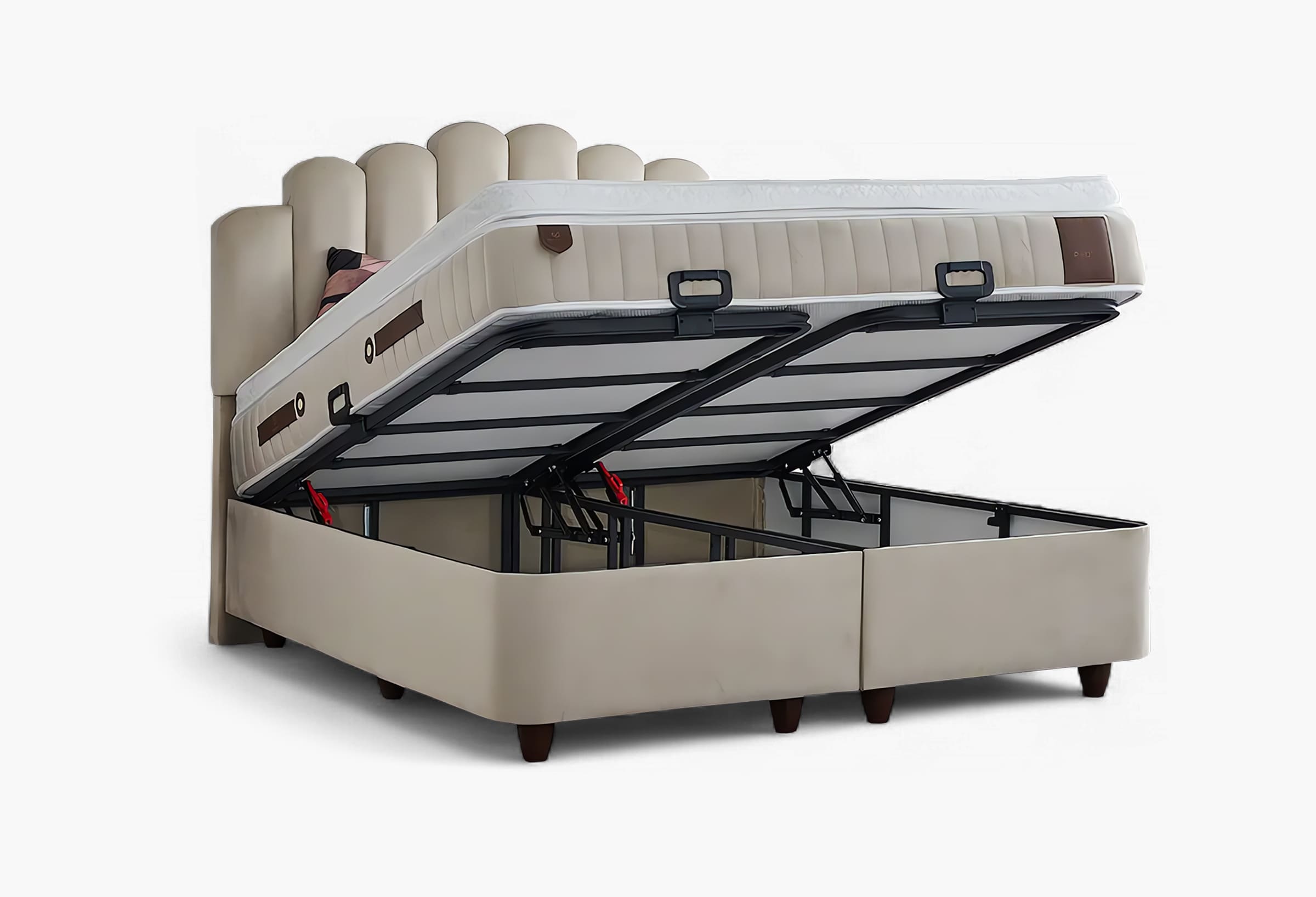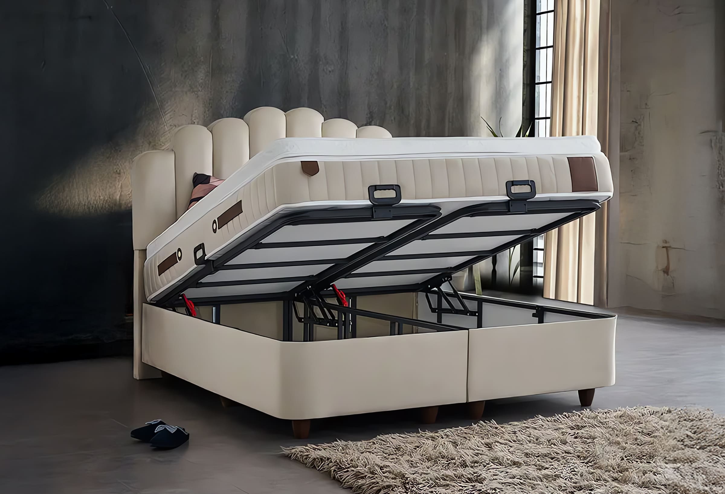 Boxspring Pyramid is verkrijgbaar in de maten 140×200, 160×200 cm en 180×200 cm en biedt een uitmuntende ligcomfort dat ideaal is voor een goede nachtrust. Maar dat is niet alles; deze premium boxspring heeft een opbergruimte onder het matrasgedeelte. Hierdoor kan je gemakkelijk en discreet al je extra beddengoed, kussens of andere slaapkamerbenodigdheden opbergen. Geen gedoe meer met overvolle kasten of rommelige hoeken. Met Boxspring Pyramid houdt je de slaapkamer netjes en georganiseerd.