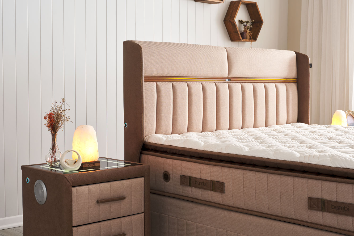 Biosalt Matras, ontwikkeld met natuurlijk steenzout gewonnen uit de Çankırı Zoutgrot, waarvan de bekende geschiedenis minstens 5000 jaar teruggaat, ondersteunt het ontstaan ​​van een bioritme door statische elektriciteit uit het lichaam te verwijderen en verbetert zo het slaappatroon en de kwaliteit. Zout, dat 84 van de 92 elementen bevat die het menselijk lichaam op een evenwichtige manier nodig heeft, helpt gemakkelijker te ademen door de positieve ionen te neutraliseren die door elektronische apparaten worden uitgezonden dankzij de negatieve ionen die het in de omgeving afgeeft. Çankırı Natuurlijk Steenzout, waarvan wetenschappelijk is bewezen dat het zuiverder is dan Himalayazout en een wonderbaarlijk effect heeft op de gezondheid dankzij de eigenschap verrijkt met natuurlijke mineralen, brengt het zoutkamereffect naar je slaapkamer met Bambi Biozout.