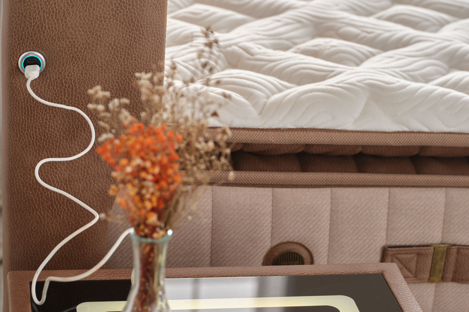 Een opgeruimde slaapkamer is essentieel voor een ontspannen sfeer. Daarom is Boxspring Biosalt uitgerust met een ingenieuze oplossing. De onderstel van deze boxspring fungeert als extra opbergruimte, waardoor je gemakkelijk en discreet al je extra beddengoed, kussens of andere slaapkamerbenodigdheden kunt opbergen. Geen gedoe meer met overvolle kasten of rommelige hoeken. Met Biosalt houdt je de slaapkamer netjes en georganiseerd.