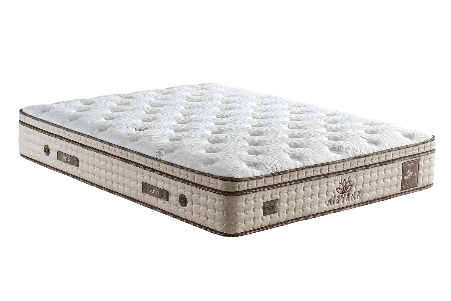 De veren, geplaatst met een dubbel pocketveersysteem, onafhankelijk van elkaar, verdelen de lichaamsdruk gelijkmatig over het bed, waardoor een comfortabelere en gezondere slaap ontstaat. Mini-pocketveren die als tweede laag op de pocketveren zijn geplaatst, omsluiten de lichaamsrondingen volledig, houden de wervelkolom rechtop en zorgen voor een optimale slaappositie. Bereik vrede met Nirvana prime.