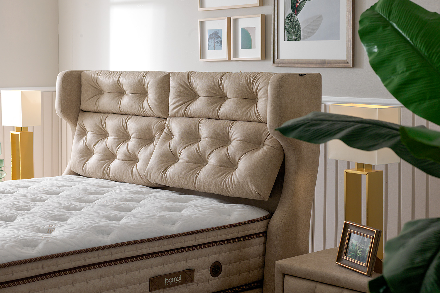 Het hoofdbord van Nirvana is een kunstwerk op zich. Met een mooi design en hoogwaardige afwerking voegt het een vleugje elegantie toe aan je slaapkamer. Het hoofdbord is niet alleen een visueel hoogtepunt, maar biedt ook comfortabele ondersteuning voor je hoofd en rug wanneer je ’s nachts wilt lezen of tv wilt kijken.