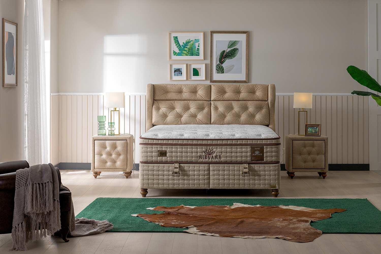 Met de beschikbare maten en het uitstekende ligcomfort is dit de perfecte aanvulling op elke slaapkamer. Breng een vleugje luxe in je leven met de “Nirvana” boxspring en geniet van een comfortabele nachtrust.