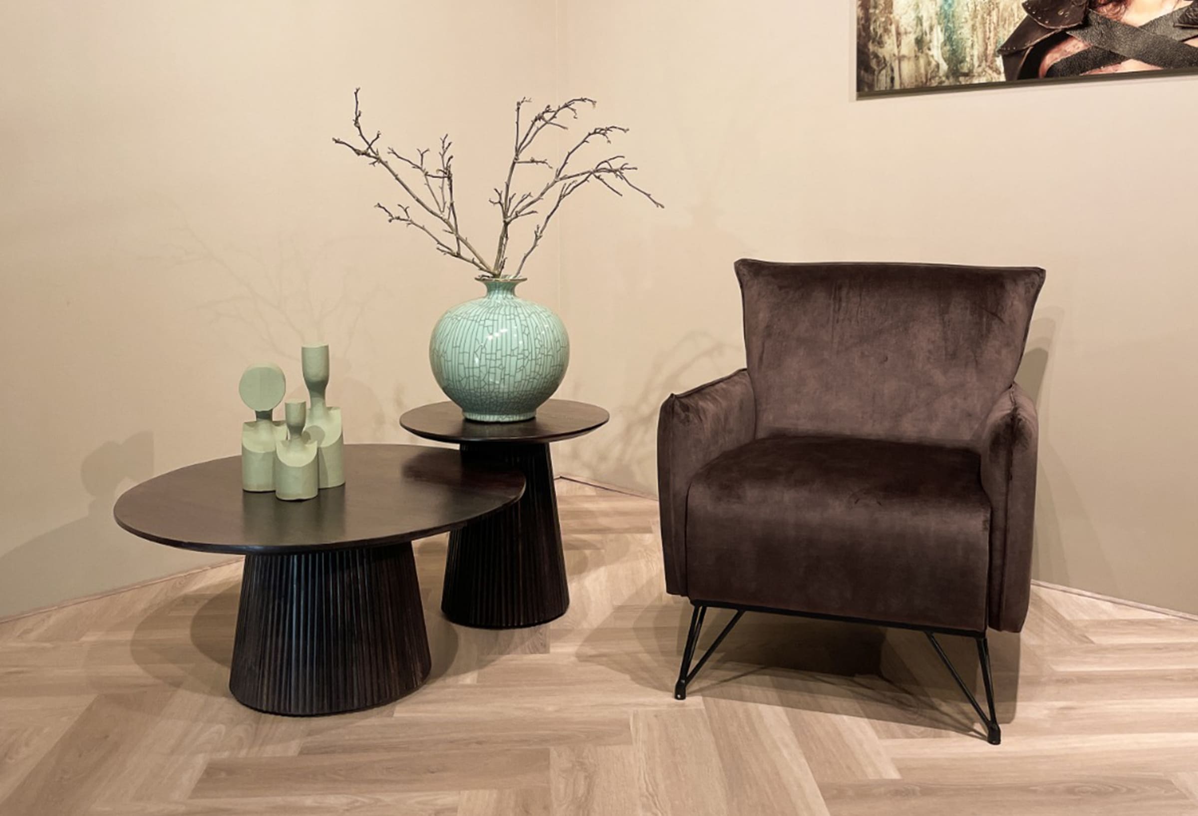 Ervaar de tijdloze allure van deze bijzettafel, vervaardigd uit hoogwaardig mangohout. De ovale tafel met een verfijnde middenpoot voegt een vleugje elegantie toe aan elke woonruimte. Ontdek de perfecte balans tussen stijl en functionaliteit met deze prachtige toevoeging aan uw interieur.