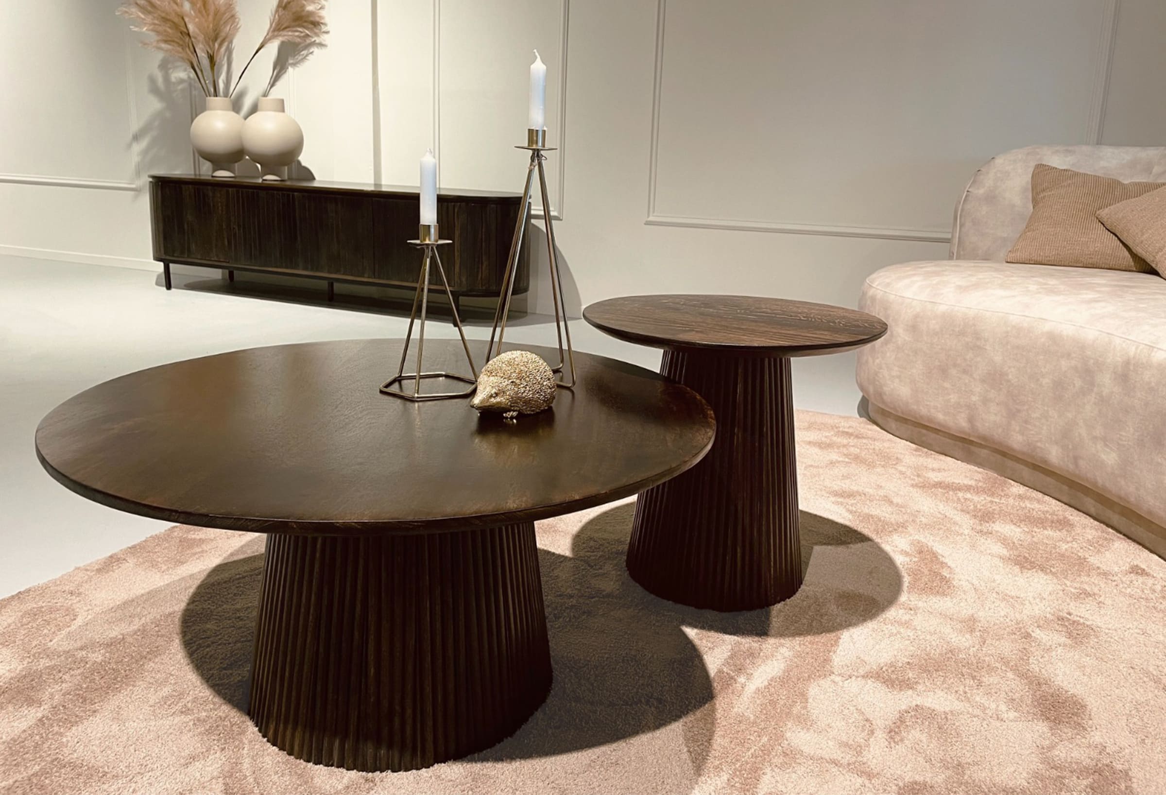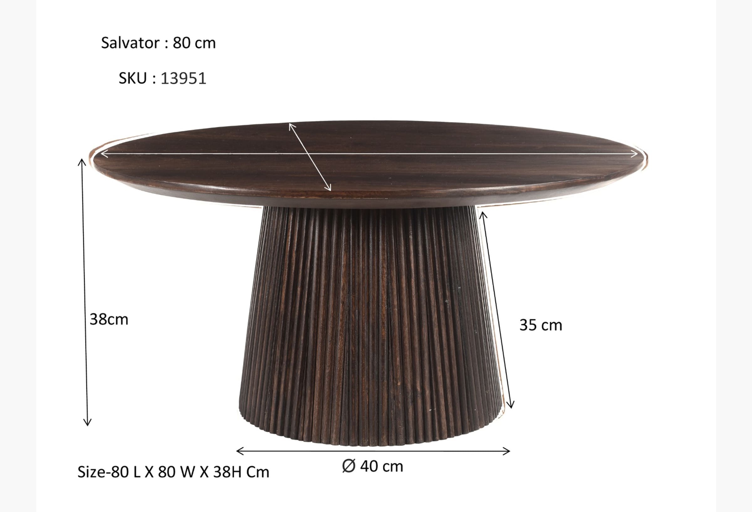 Ervaar de tijdloze allure van deze salontafel, vervaardigd uit hoogwaardig mangohout. De ronde tafel met een verfijnde middenpoot voegt een vleugje elegantie toe aan elke woonruimte. Ontdek de perfecte balans tussen stijl en functionaliteit met deze prachtige toevoeging aan uw interieur.