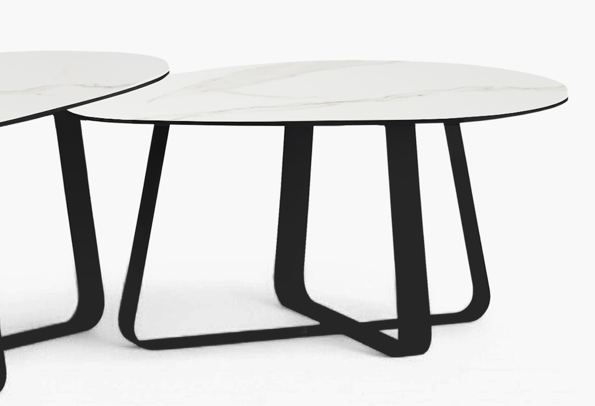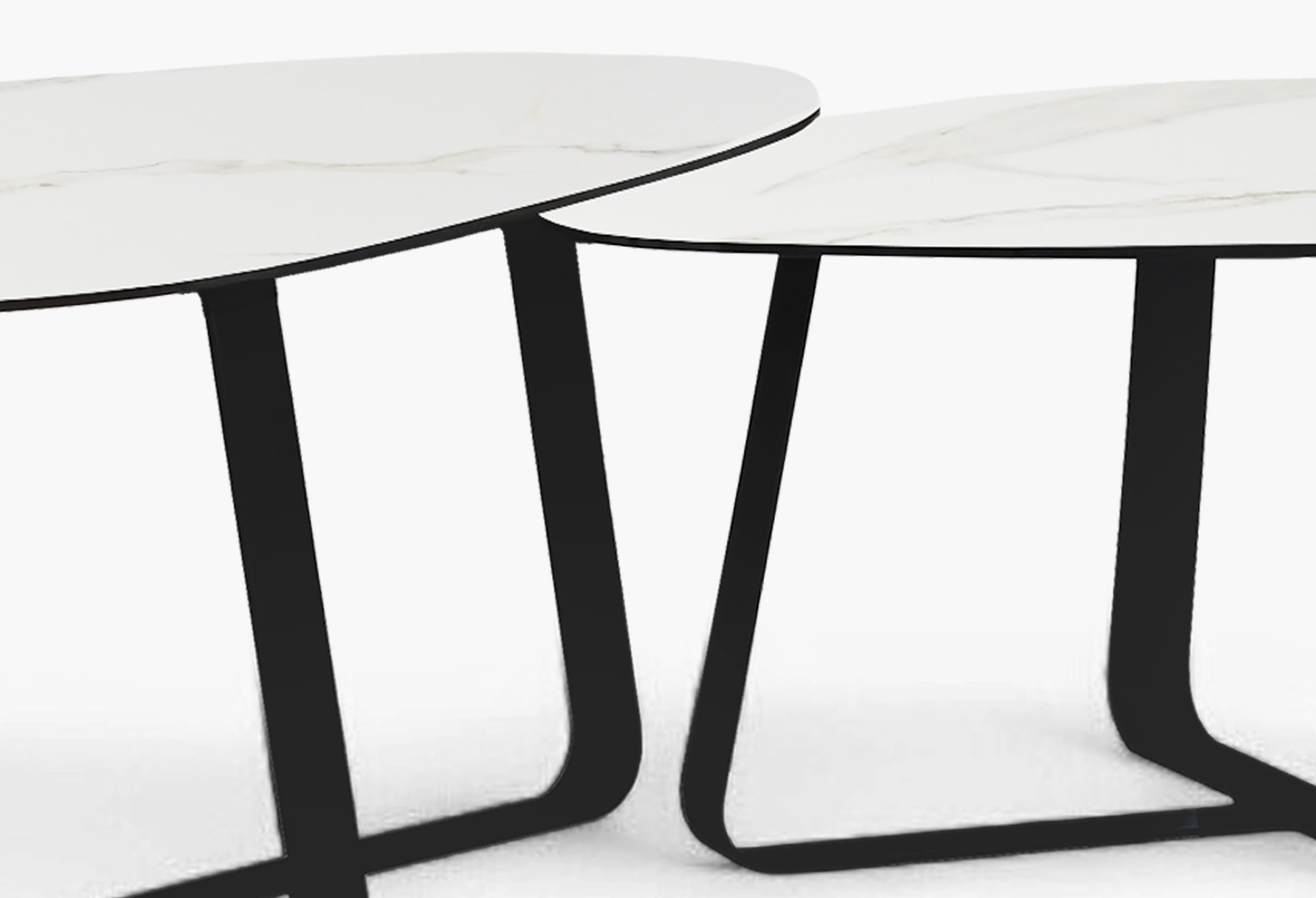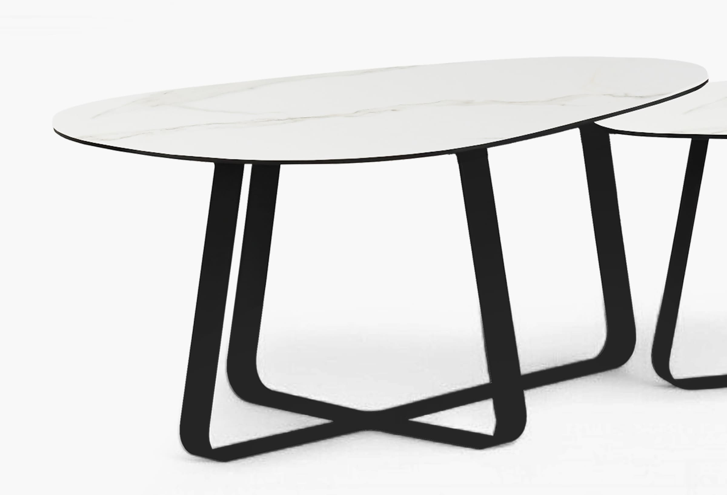De tafel staat stevig op een robuuste metalen basis, afgewerkt met een zwarte poedercoating. Deze afwerking geeft niet alleen een tijdloze uitstraling, maar biedt ook bescherming tegen slijtage en krassen.