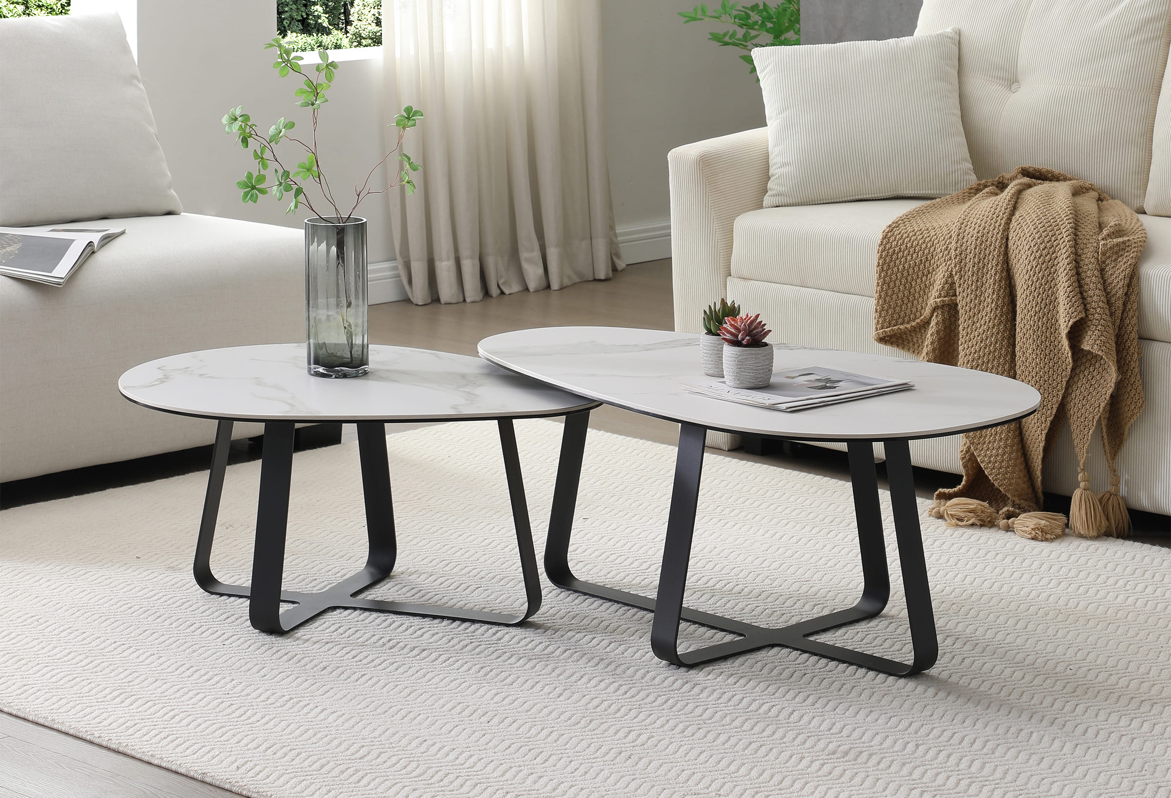 Laat je verleiden door deze innovatieve salontafel-set, waar stijl, functionaliteit en flexibiliteit naadloos samenkomen.