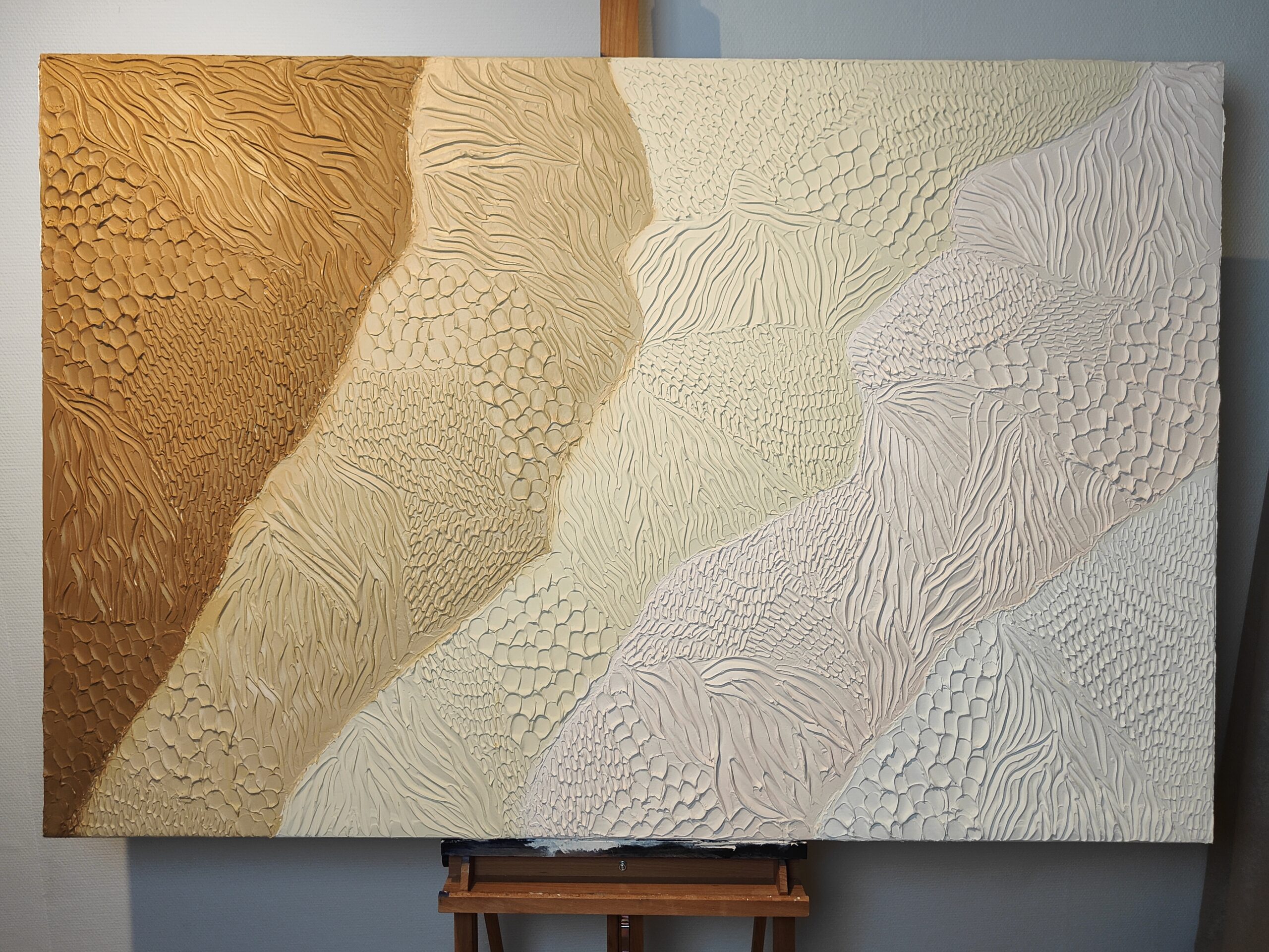 Handgemaakte olieverf schilderij van 100% katoen, premium canvas van maar liefst 4.5 cm dik.
